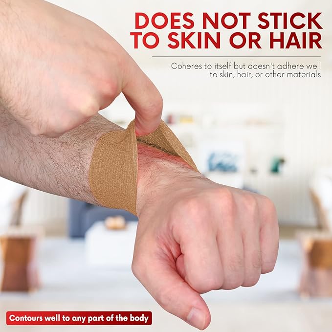 - STRONG SELF-ADHESIVE BANDAGE. This self-adherent wrap is strong enough to stick to itself with non-slip textured surfaces. This ensures no slipping or removal during recovery or exercise, making it a reliable alternative to body tapes, gauze rolls, and medical tapes with wider body coverage.
