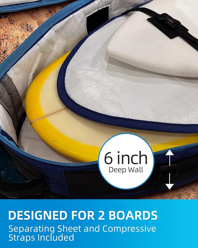 OCEANBROAD Surfboard Longboard Travel Bag Double for 2 Boards 6'0, 6'6, 7'0, 7'6, 8'0, 8'6, 9'0, 9'6, 10'0