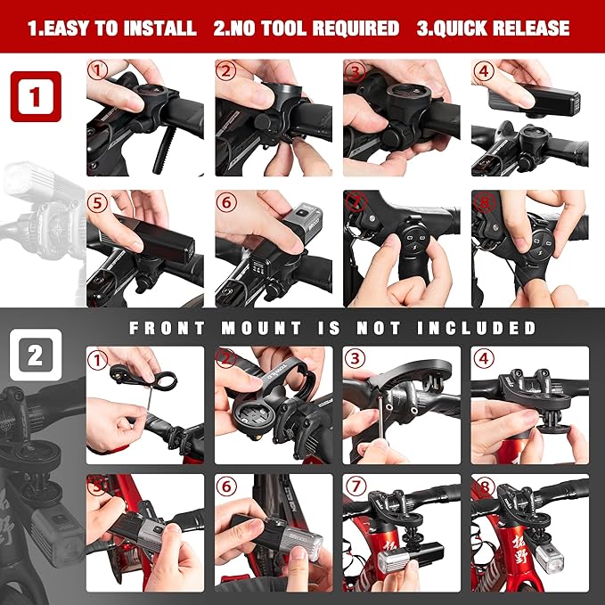 - EASY TO MOUNT & RELEASE QUICKLY - TOWILD bike headlights are compatible with Garmin quarter lock mounts,also can combine with bike computers by out front mount.Stable bracket won't make the bike light vibrate out of the holder when going over rough roads
