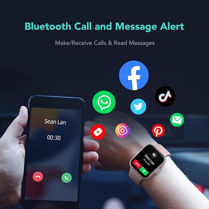 - MAKE/ANSWER CALL & SMART NOTIFICATION:With built-in speaker and bluetooth connectivity, you can directly make or receive calls with your family and friends via the smartwatch, also it supports multiple smart reminders, including incoming calls, text, SNS messages (Facebook, WhatsApp, Twitter, etc), daily reminder, etc, extremely convenient for your life and you will never miss any important information.