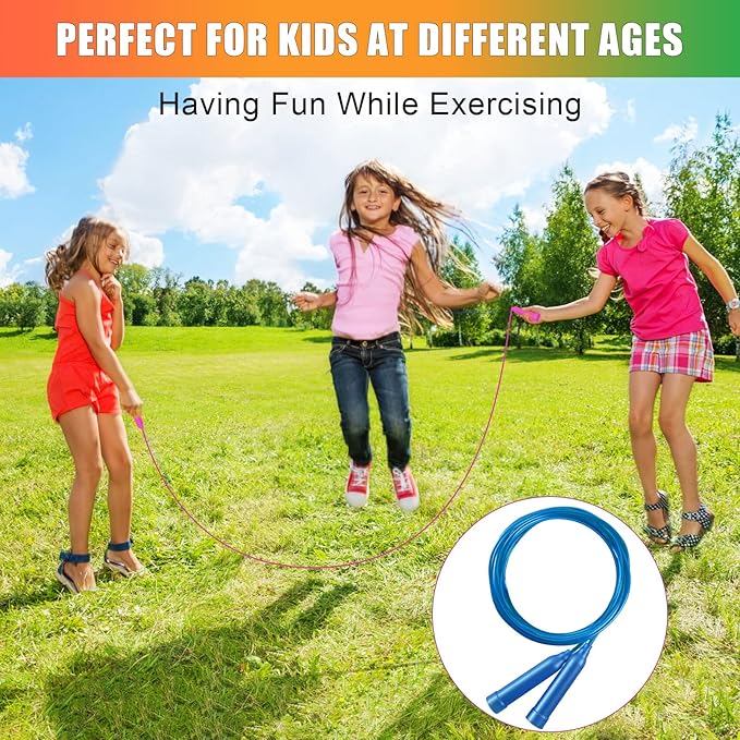 - 🌈Exercise in Comfort: Our skipping rope is made from soft PVC material, lightweight and durable. Each jump rope with 2 plastic and durable handles, which you can hold comfortably and play easily. kids can all enjoy their happy time jumping rope.