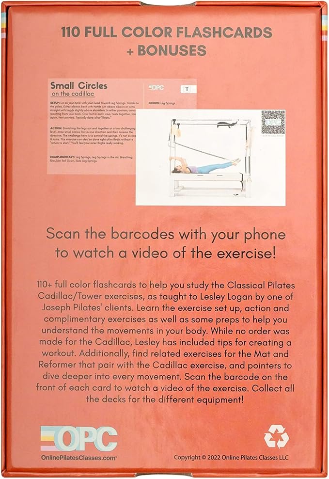 OnlinePilatesClasses Pilates Cadillac Tower Reformer Deck with Video Tutorials, Fitness Flash Cards with 110 All-Levels Cards Set for Home Gym Exercise, Reformer Not Included