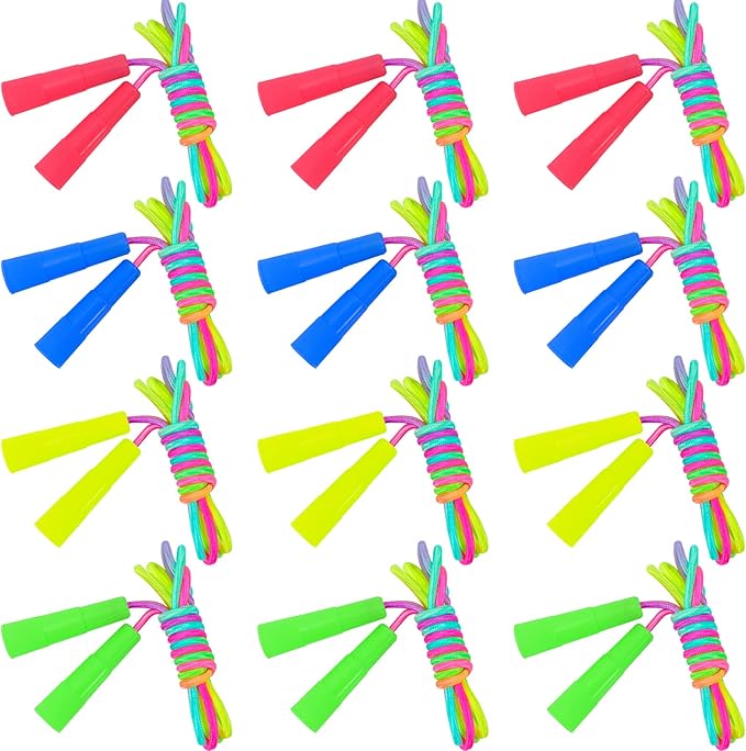 - ⛹️♂️Rainbow Jump Rope Set: You will receive 12 pieces kids rainbow jump ropes, sufficient quantity can meet your daily needs or play with with friends or family. Jumping rope handles come in green, yellow, red or blue. Vibrant colors, beautiful and eye-catching can meet your preferences.