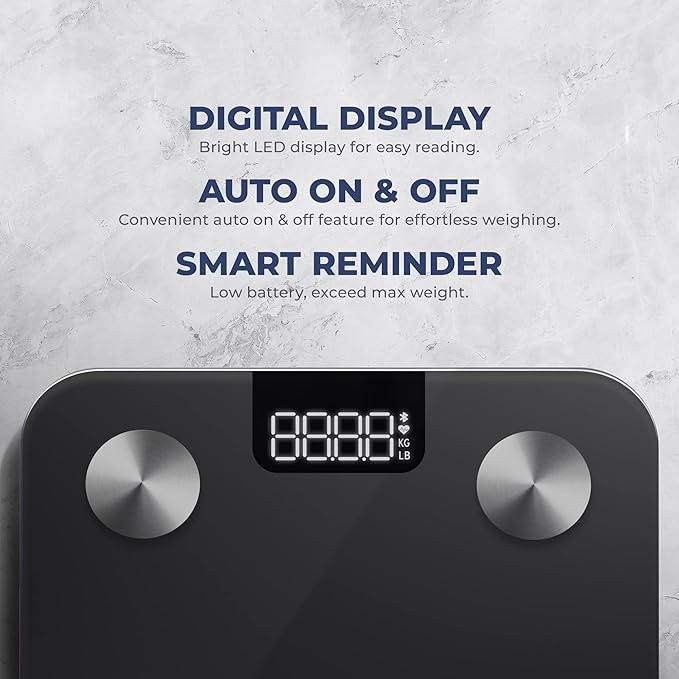 - 【HIGH ACCURACY BODY FAT SCALE】4 high-precision sensors on our scale give weight metrics within 0.1LB and various other health metrics. Always know and track how your journey is coming with reliable and accurate data.