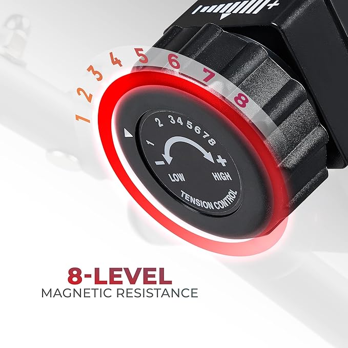 - 8-LEVEL MAGNETIC RESISTANCE: 8 Levels of smooth and adjustable magnetic resistance makes it easy to modify intensity to deliver the perfect workout challenge.