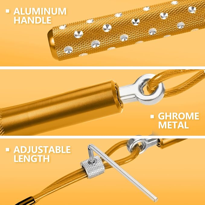 - 🍀 【BUILT-IN STEEL WIRE DURABLE AND BREAK-PROOF】: The workout jump rope is made by steel wire rope which is coated with silicon material giving it extra protection. It features durability, endurability and fluentness, eliminates tangling and coiling and allows you to jump on different flat surface. Perfect adult jump rope for weight loss and workout equipment for women and men.