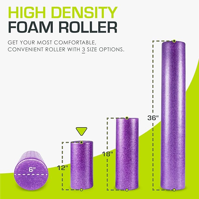 - VARIETY OF SIZES AND COLORS β Choose from 4 sizes: full-length 36 by 6 inches for full back coverage, 24 by 6 inches for more compact, 18 by 6 inches for smaller muscle groups and 12 by 6 inches thatβs ideal for travel and space-saving. Comes in solid and speckled designs: black, purple, blue, pink, red, orange and green.
