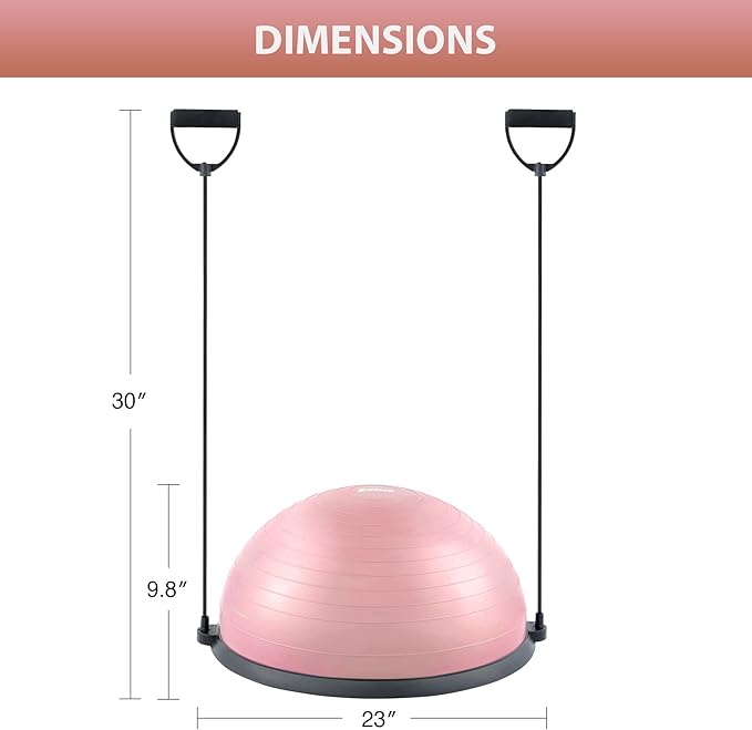 - BALL PUMP INCLUDED: A complete combo, this half-dome stability ball comes with a complimentary foot pump that makes it easy to get fully inflated to 9.8β in under 5 minutes. The ballβs high-quality air valve prevents air leakage and extends service life