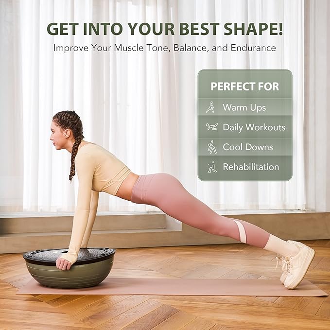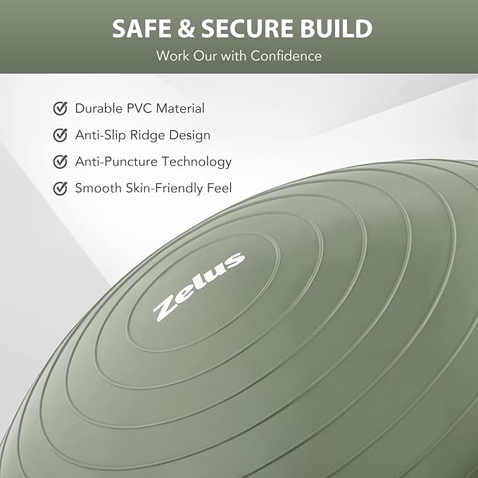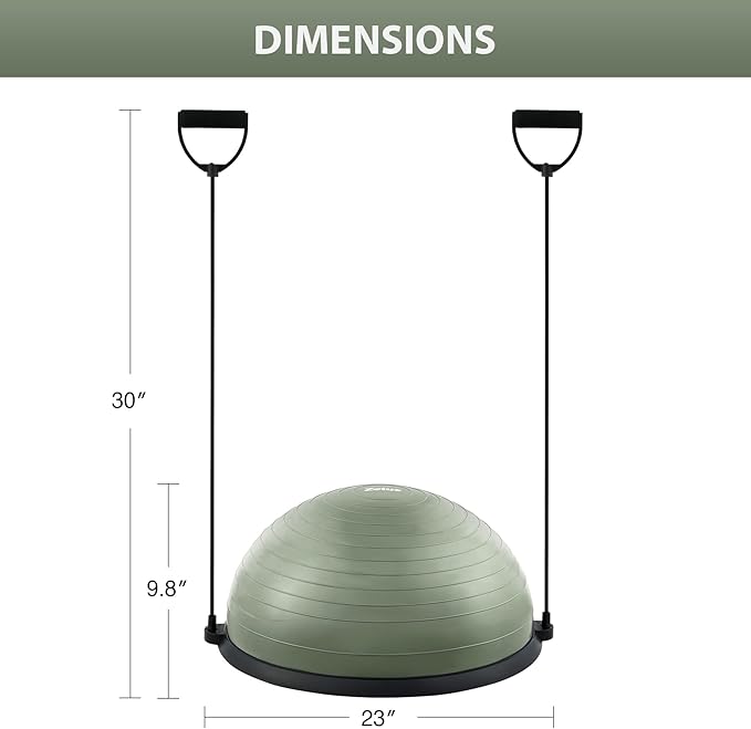 - BALL PUMP INCLUDED: A complete combo, this half-dome stability ball comes with a complimentary foot pump that makes it easy to get fully inflated to 9.8β in under 5 minutes. The ballβs high-quality air valve prevents air leakage and extends service life