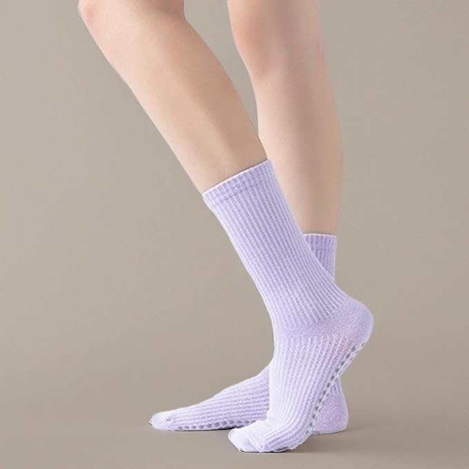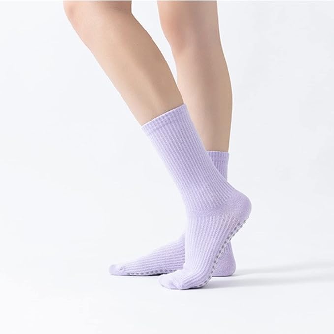 - 【Anti-Slide Grips】:The non-slip sticky grip patterns cover the entire heel and toe for maximum grip and traction. It improves stability and safety for all barefoot sports such as yoga, dance, Pilates and barre without worrying about slipping or sliding. This crew sock offers the perfect balance of support, cushioning and mobility.
