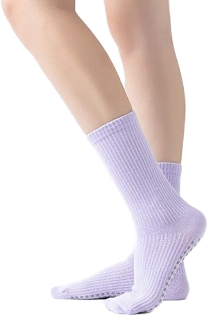 Yoga Pilates Socks with Grips for Women Non Slip Solid Colored Cushioned Crew Compression Socks for Barre Ballet Dance