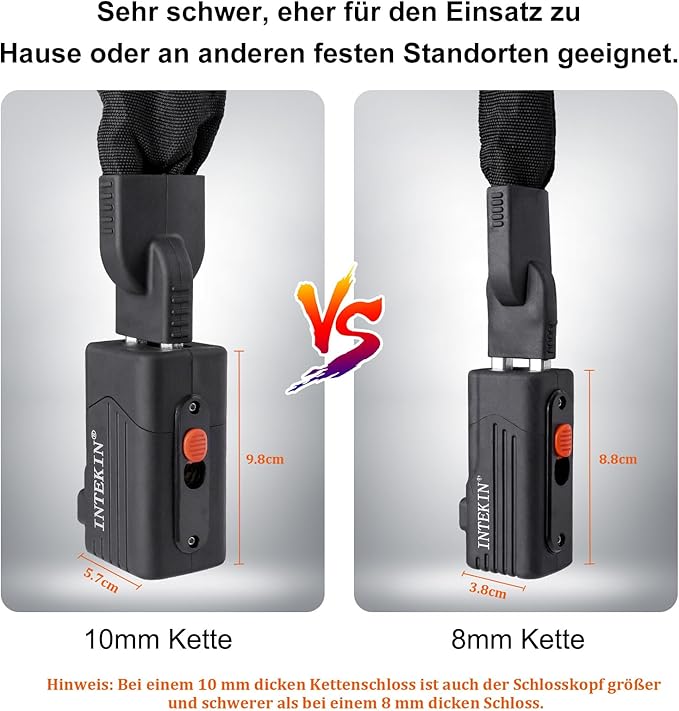 - MASSIVE BUT HIGHLY SECURE: The total length of this chain bike lock is 4 FT and the weight of which is 6.83 lbs. This lock is made of heavy-duty steel, sacrificing weight but providing adequate security. Please take the weight into account!