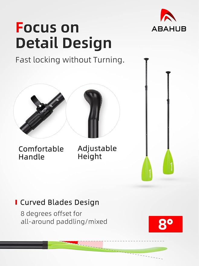Abahub SUP Paddle - 3 Piece Adjustable Paddles - Lightweight Stand-up Paddle Oars for Paddleboard, Adjustable Aluminum Alloy Shaft 68" - 84", Black/Blue/Green/Orange/Red/Yellow Plastic Nylon Blade