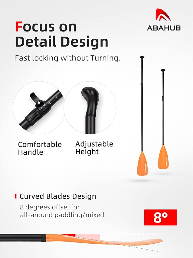 Abahub SUP Paddle - 3 Piece Adjustable Paddles - Lightweight Stand-up Paddle Oars for Paddleboard, Adjustable Aluminum Alloy Shaft 68" - 84", Black/Blue/Green/Orange/Red/Yellow Plastic Nylon Blade