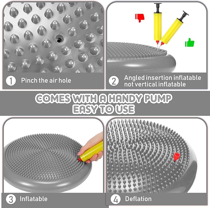 - Bring You a Comfortable Using Experience: made of PVC, our balance disc is soft and non slip, not easy to break or tear, can withstand 450 lbs of weight, allowing you to enjoy your sports time and providing you with a comfortable using experience