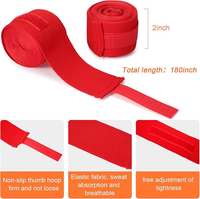 - Package Includes: the package will provide you with 6 pairs of boxing hand wraps in 6 colors, namely red, dark blue, orange, white, black and gray, and each measures about 180 inches in length, 2 inches in width, they are composed of quality material and rich in quantity, can well meet your daily use and replacement needs