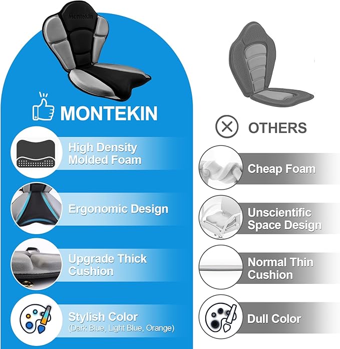 - [Large Capacity Storage Bag] Montekin thickened kayak seat comes with a detachable zipper storage bag which is coated by water resistance material, convenient for you to store your kayak accessories or your personal belongings
