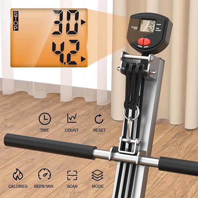 - đăMultifunction Digital Monitor for Smart TrackingăEquipped with a clear LCD monitor, this row machine for home tracks real-time data: rowing time, counts, REPS/min, and calories burned. Stay on top of your goals with easy-to-read metrics, making it a reliable cardio machine for home. Itâs the perfect companion for anyone using a rowing machine to monitor progress in their home workouts.
