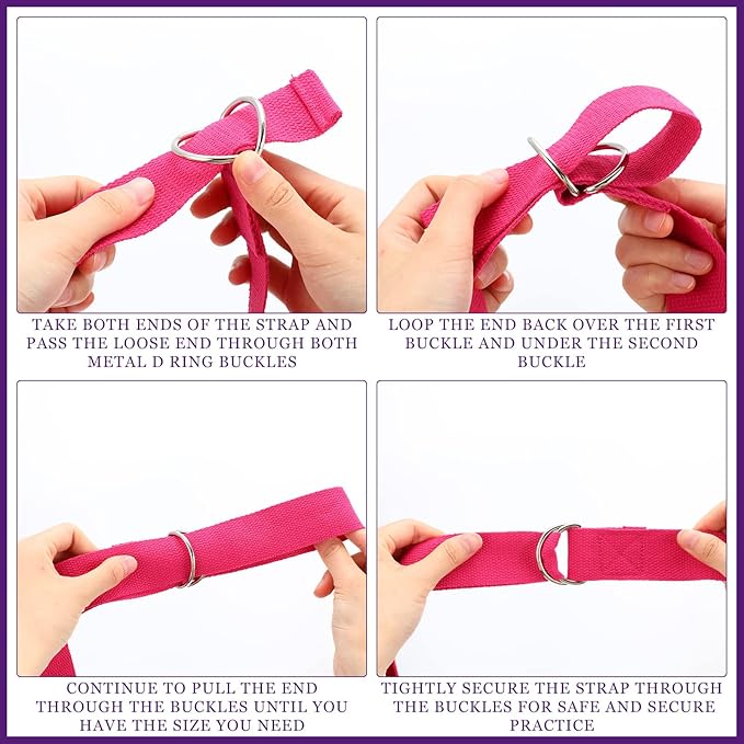 - D Ring Buckle Design: the D ring metal buckle holds the yoga elastic band securely to the desired length without injury; Tension straps with loops make the band easy to adjust, ensuring support for your yoga practice and every yoga pose