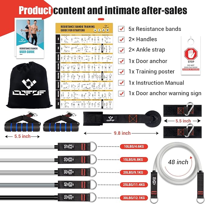 - 💞Upgraded Resistance Bands & After-sales Service: You will get resistance band*5, 2 handle, 2 ankle strap, 1 door anchor, 1 training poster, 1 instruction manual. To increase your workout intensity level, simply combine resistance bands with training posters to suit your workout needs. With resistance band exercises, you can get the perfect shape. If you encounter any problem while using the product, please contact us and we will help you to solve it within 12 hours.