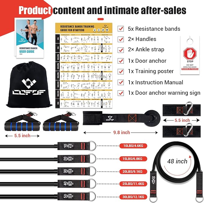 - 💞Upgraded Resistance Bands & After-sales Service: You will get resistance band*5, 2 handle, 2 ankle strap, 1 door anchor, 1 training poster, 1 instruction manual. To increase your workout intensity level, simply combine resistance bands with training posters to suit your workout needs. With resistance band exercises, you can get the perfect shape. If you encounter any problem while using the product, please contact us and we will help you to solve it within 12 hours.