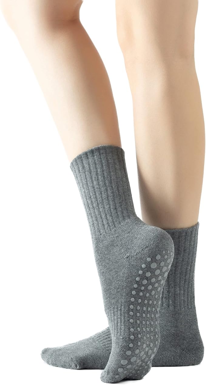 - 【Anti-Slide Grips】:The non-slip sticky grip patterns cover the entire heel and toe for maximum grip and traction. It improves stability and safety for all barefoot sports such as yoga, dance, Pilates and barre without worrying about slipping or sliding. This crew sock offers the perfect balance of support, cushioning and mobility.