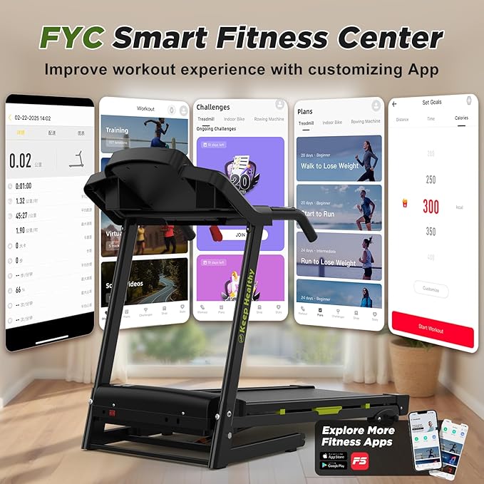 - ✿【Multi-functional LED Display】Multi-functional LED Display can clearly show Time, Step, Speed, Distance and Calories, monitoring your progress in real time and keeping your movement data at a glance. FYC treadmill is committed to providing you with a better exercise experience.