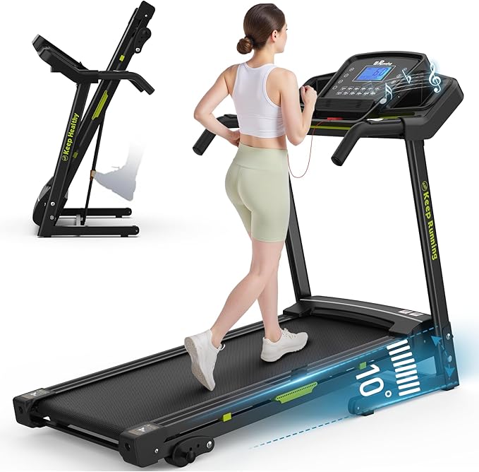- ✿【With Bluetooth & Phone Holder】Connect the Airhot folding treadmill to your phone through Bluetooth, so you can play music while you are exercising. You can also use the phone holder to watch videos or chat with friends. The cup holders are convenient for you to put the cup or water bottle while exercising.