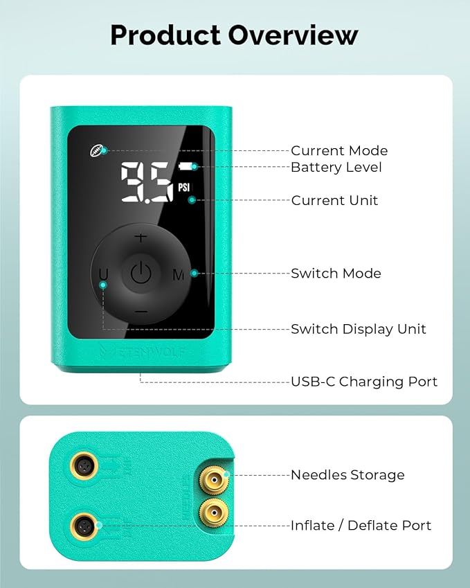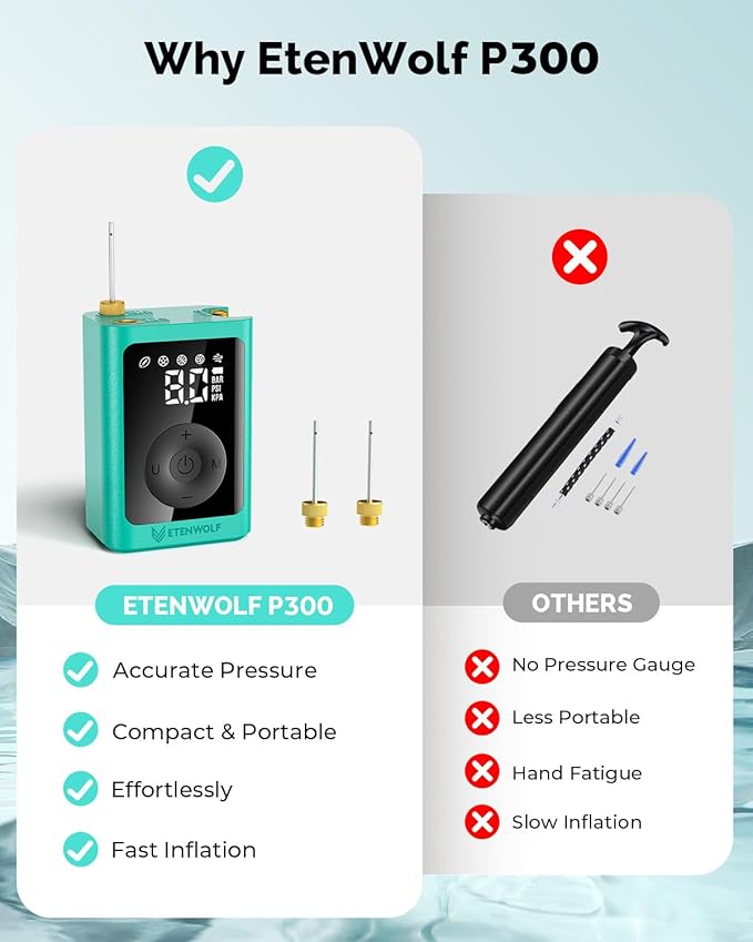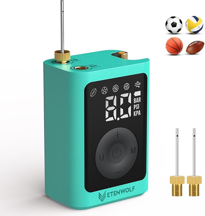 - PRECISE: Equipped with a highly sensitive pressure sensor, the ETENWOLF ball air pump can detect current ball pressure and reach the exact target pressure you set(plus-minus 0.3 psi)