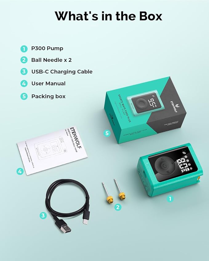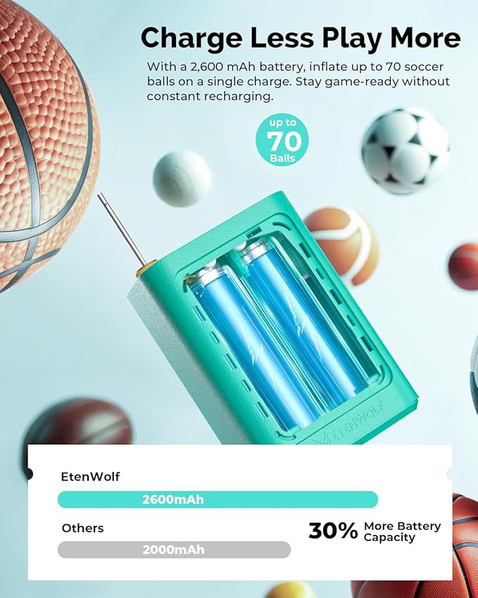 - SMART: Simply press a button, and the ETENWOLF ball pump automatically inflates each ball to the desired pressure in just 1 minute