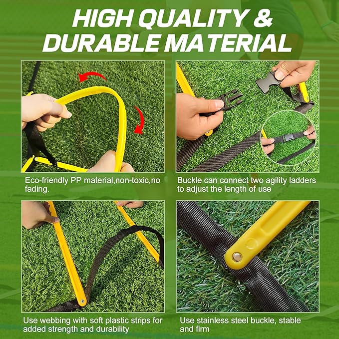 - 【Boost Your Soccer Agility!】Agility ladder training is highly suitable for improving explosive power and agility in soccer practice. Without a ladder, it's easy for players to have improper foot spacing. Using a ladder while being aware of the correct foot spacing, posture, and the positioning of your head, shoulders, and feet. This ingrains proper movement patterns into your body, enabling you to unleash your full potential as an individual player and elevate your performance level in matches