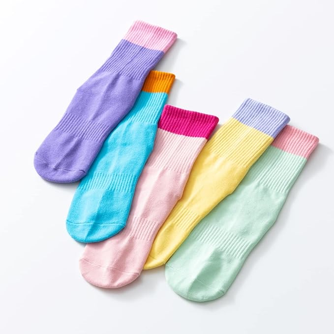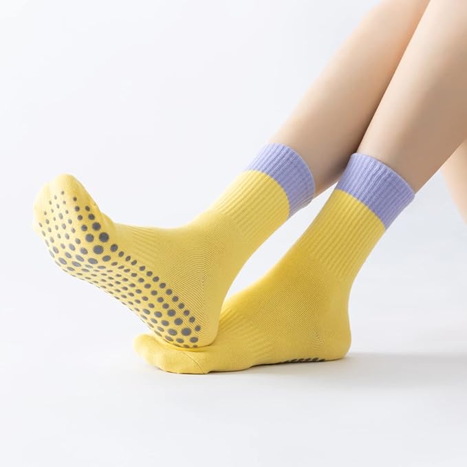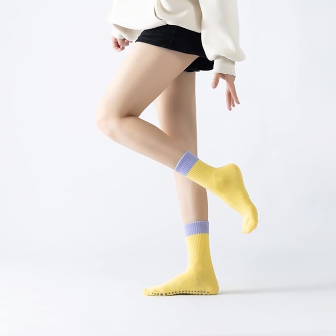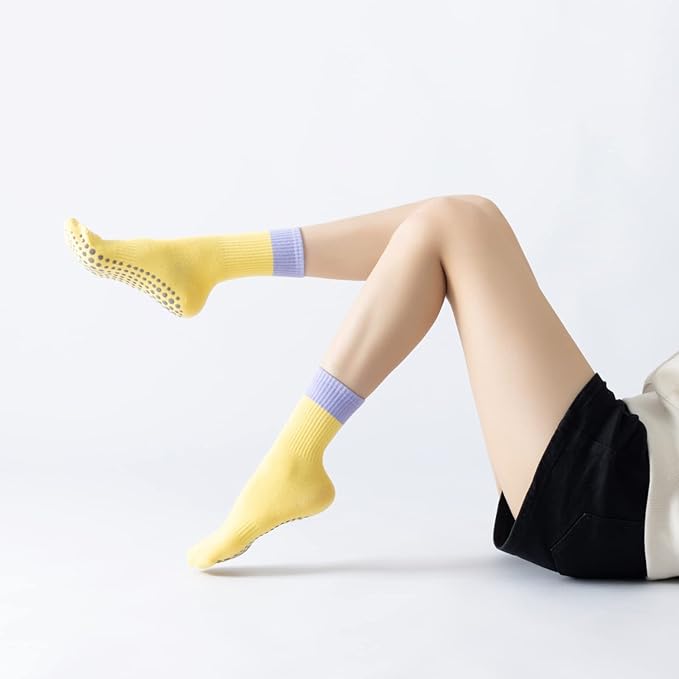 - 【Occasions】: The fancy color blocking cushioned grip socks are ideal for wearing on smooth and slippery surfaces like hardwood floors or tile, offering great comfort without sacrificing performance. In addition to being great for improving your yoga performance, our grip socks are also suitable for Pilates, ballet, ballet, fitness, dance and all other barefoot activities.