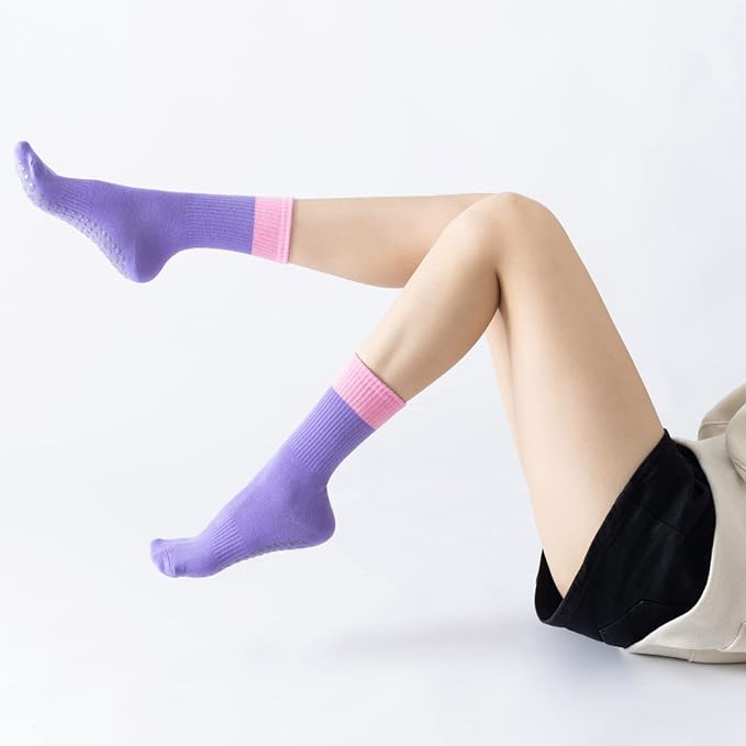 - 【Occasions】: The fancy color blocking cushioned grip socks are ideal for wearing on smooth and slippery surfaces like hardwood floors or tile, offering great comfort without sacrificing performance. In addition to being great for improving your yoga performance, our grip socks are also suitable for Pilates, ballet, ballet, fitness, dance and all other barefoot activities.