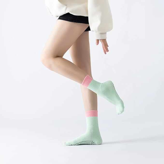 • 【Occasions】: The fancy color blocking cushioned grip socks are ideal for wearing on smooth and slippery surfaces like hardwood floors or tile, offering great comfort without sacrificing performance. In addition to being great for improving your yoga performance, our grip socks are also suitable for Pilates, ballet, ballet, fitness, dance and all other barefoot activities.