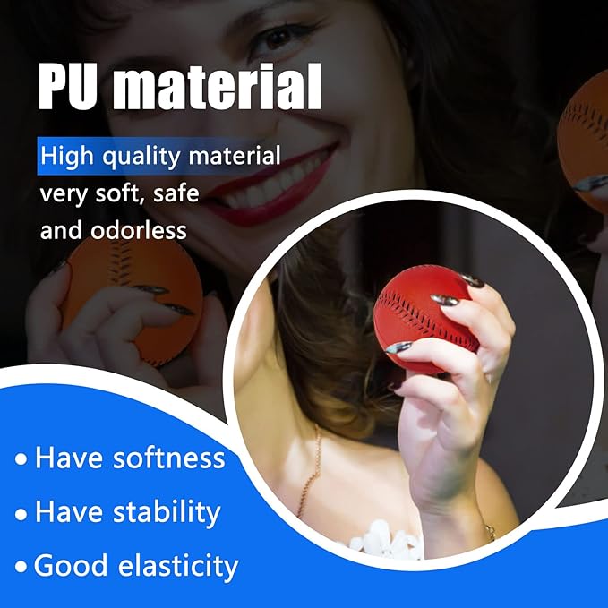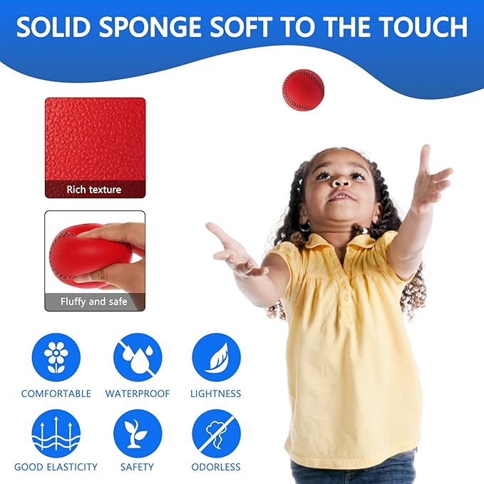 - 【HIGH-QUALITY MATERIALS】: These foam baseball balls are made of quality resin and PU rubber, which has the characteristics of softness, stability and good elasticity, allow them to pop right back into their original shape after they're hit. The spong baseballs are very soft and lightweight, safe and odorless, flexible and elastic.