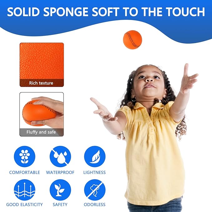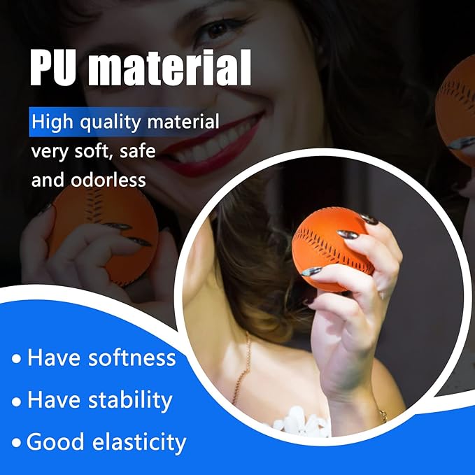 - 【HIGH-QUALITY MATERIALS】: These foam baseball balls are made of quality resin and PU rubber, which has the characteristics of softness, stability and good elasticity, allow them to pop right back into their original shape after they're hit. The spong baseballs are very soft and lightweight, safe and odorless, flexible and elastic.