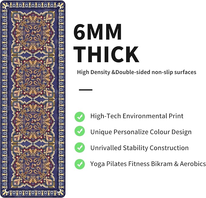 nuveti Yoga Mat Print Extra Thick TPE Non Slip Fitness Exercise Mat with Carrying Bag,72"x24" Extra Thick 6MM Exercise & Workout Mat for Yoga, Pilates Fitness and Floor Exercises