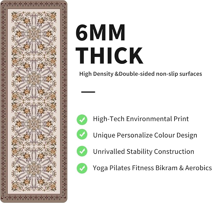 nuveti Yoga Mat Print Extra Thick TPE Non Slip Fitness Exercise Mat with Carrying Bag,72"x24" Extra Thick 6MM Exercise & Workout Mat for Yoga, Pilates Fitness and Floor Exercises