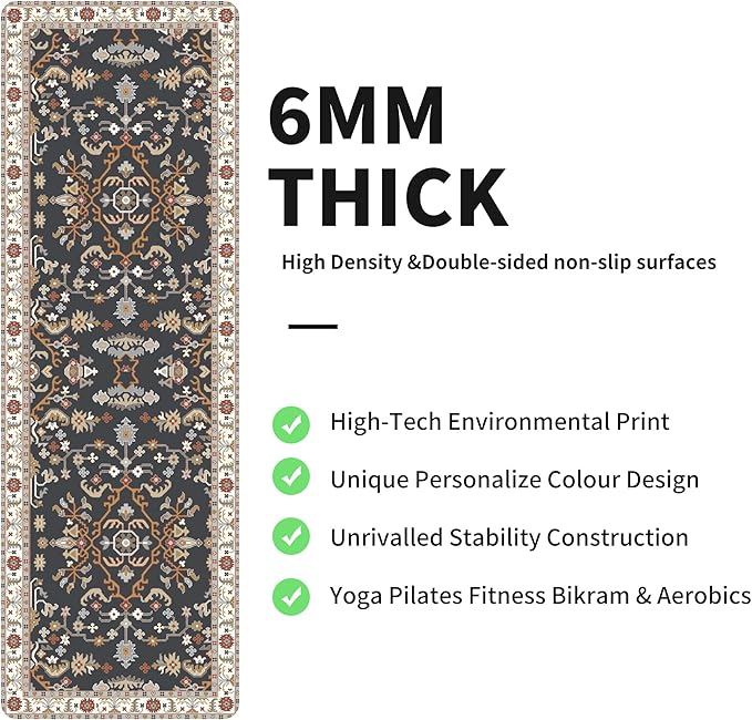 nuveti Yoga Mat Print Extra Thick TPE Non Slip Fitness Exercise Mat with Carrying Bag,72"x24" Extra Thick 6MM Exercise & Workout Mat for Yoga, Pilates Fitness and Floor Exercises