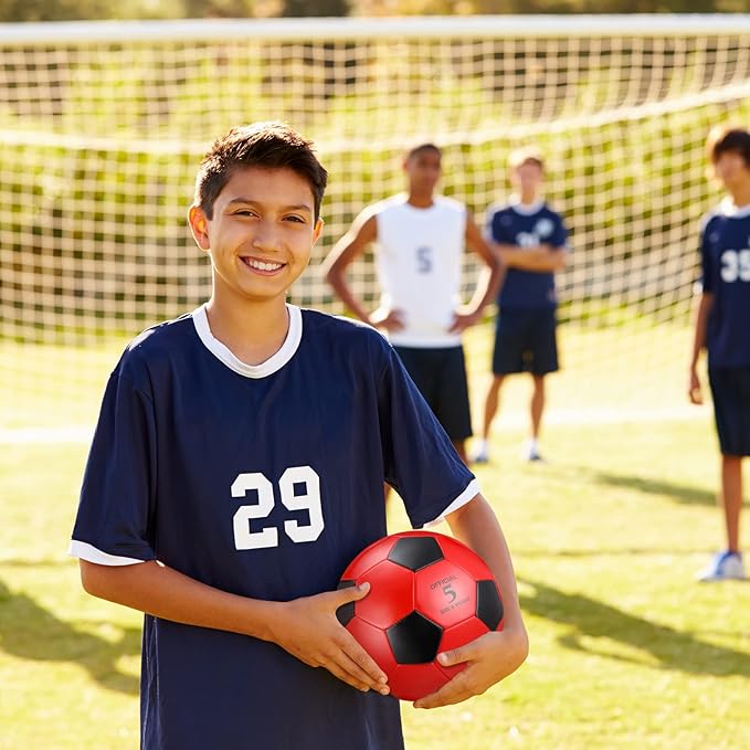 - 3 Sizes for You to Choose: training soccer ball has 3 sizes, size 3, 4, 5, and soccer ball of size 3 measures about 18 cm/ 7.09 inches in diameter and fits,soccer ball of size 4 measures about 20 cm/ 7.87 inches in diameter and fits, soccer ball of size 5 measures about 22 cm/ 8.66 inches in diameter and fits for youth; You can choose the size according to your requirement
