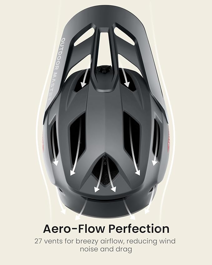 OutdoorMaster Full Face Mountain Bike Helmet for Men & Women-Two Removable Chin Pad Mountain Bike Helmet Grizzly, Ventilation Lightweight Racing Downhill DH BMX MTB Helmet