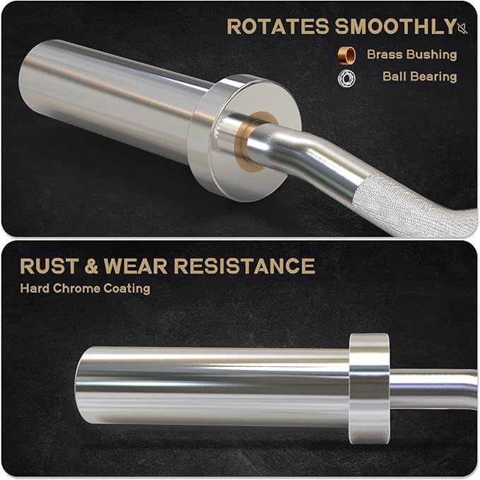- Smooth Rotation & Secure Loading: Equipped with rotating sleeves for fluid movement and secure Olympic plate retention. You have three strength bar to choice: sliver, half black and full black.