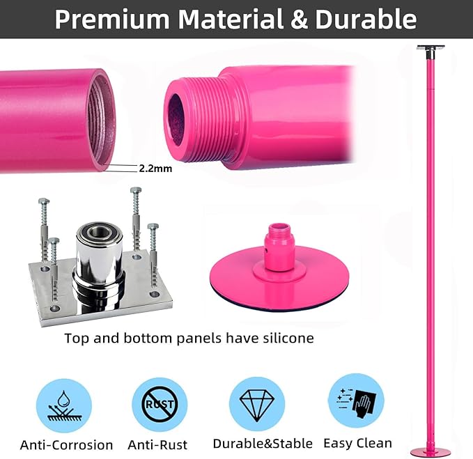 - 【Very Easy to Install】Prepare the installation area. Before you start installing your pole, make sure you have enough clearance around it, a stable surface to stand on, and the necessary tools and hardware. You will need a drill, screws, anchors, level, tape measure and, if you have high ceilings, a ladder or stool. It is also recommended to clean the area and remove any obstacles or hazards that may interfere with your dancing.