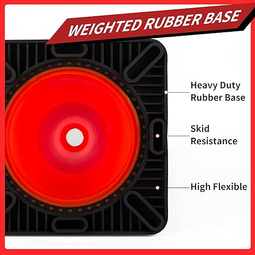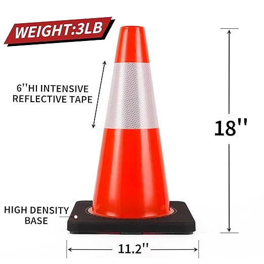- STABLE AND DURABLLE: Our heavy duty traffic cone 11.2x11.2inch black base design and 3 pound weight add wind resistance, allowing the safety cone to firmly grip the road and is not prone to tipping over and being blown down by the wind. Withstands high temperatures, sun exposure, cold freezes, and severe collisions.