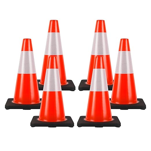 Traffic Cones 18 inch 6 Pack Heavy Duty Safety Cones Orange with Reflective Collars Fit Parking Lot,Driveway Road Traffic Control Construction Sport Cones