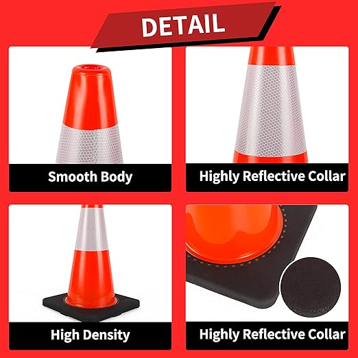 - EYE-CATCHING VISIBILIT: Our traffic cone features a combination of fluorescent orange and 6 -inch silver reflective strips. This makes them very noticeable day or night in sunny, fog, rain, snow, or other harsh conditions.