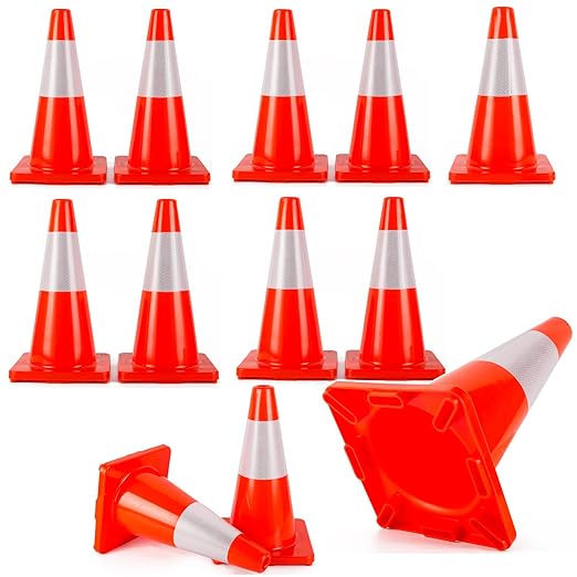 - EYE-CATCHING VISIBILIT: Our traffic cone features a combination of fluorescent orange and 6 -inch silver reflective strips. This makes them very noticeable day or night in sunny, fog, rain, snow, or other harsh conditions.