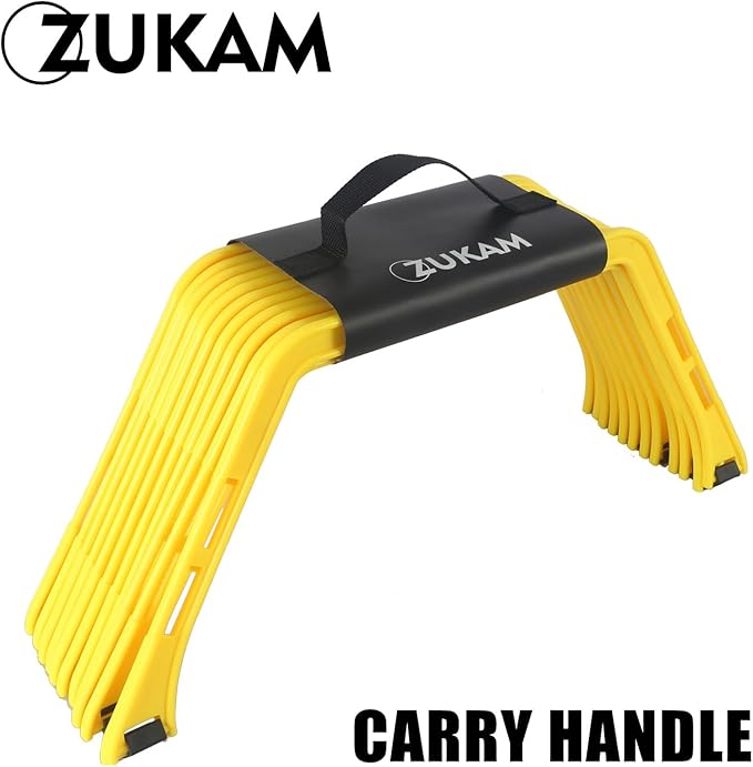- EASY FOLDING DESIGN: This is such a versatile agility training tool, they lock/unlock easily for you to change up the structure and try different things. Whether it’s footwork, speed training, or improving coordination, these rings offer endless possibilities. Entire set can be folded into a single hexagon shape. It come with a strap have carry handle to store and transport.