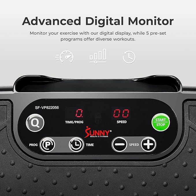 Sunny Health & Fitness Vibration Plate Exercise Machine, Full Body Vibrate Platform for Lymphatic Drainage with Multiple Speeds and Modes, Vibrating Plate Machine for Tension Relief & Weight Loss