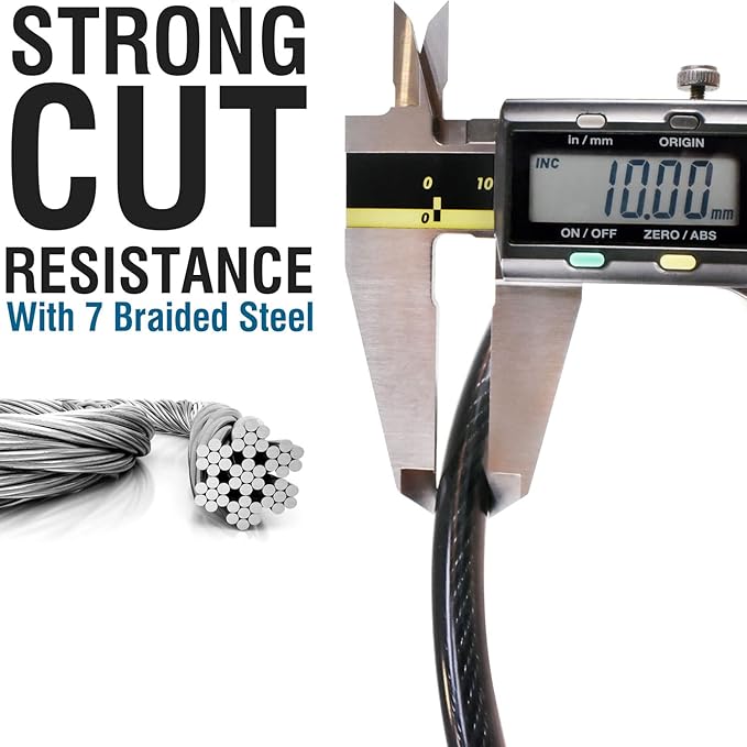 - Made With 7 Braided Steel - Our lock for bike is made of heavy-duty 7 braided steels to deter theft, providing you with peace of mind.